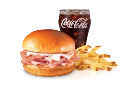 For a good-til-the-last bite meal enjoy this sandwich featuring sliced ham and melted Swiss cheese all on a Brioche style bun. We complete the combo with a side of fries and a soft drink.