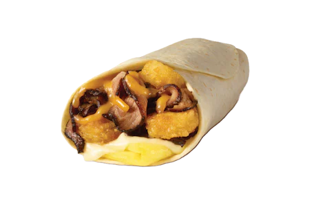 Prime Rib slices, folded eggs, Hash Rounds®, melty Swiss and cheddar cheeses all wrapped in a tortilla. Served with Texas Pete hot sauce.