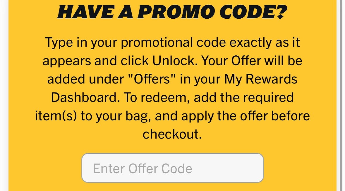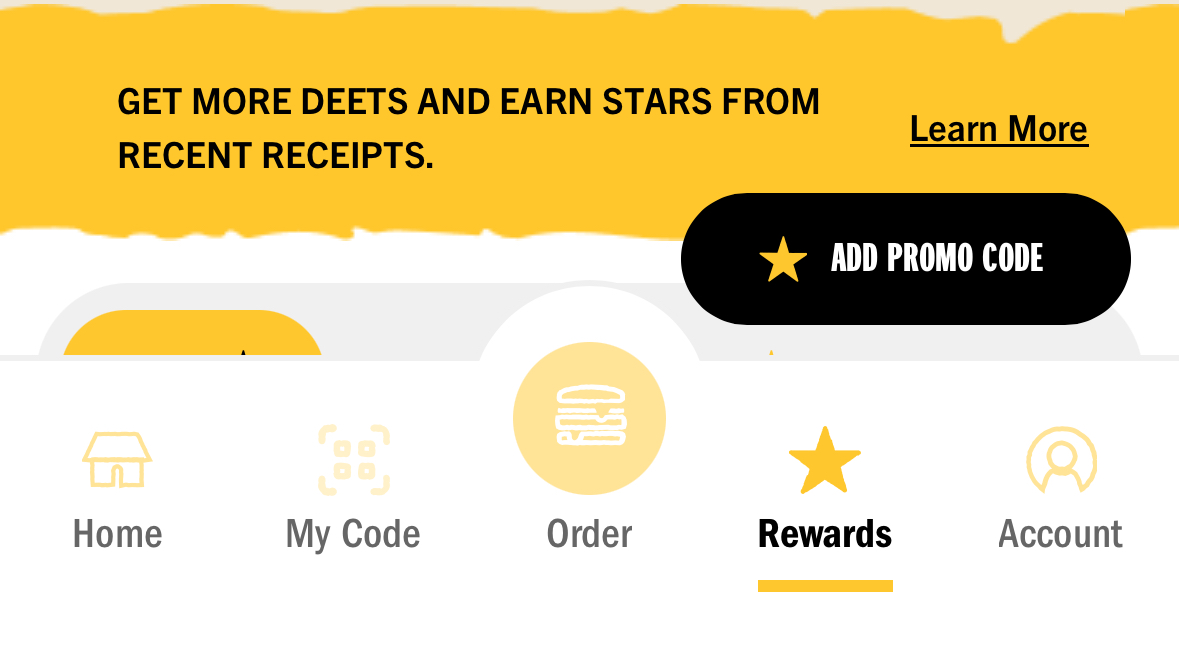 Once logged in head over to the Rewards tab in the App and click on "Add Promo Code"